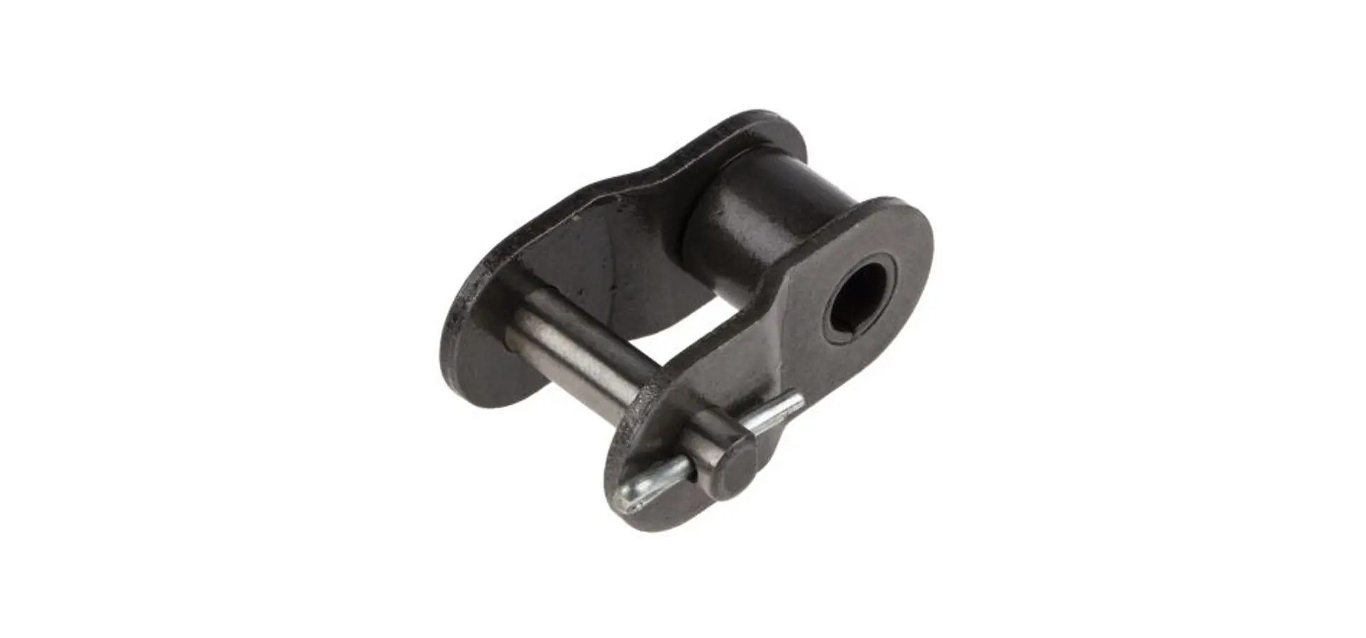A single crank link is a specialized chain link with an offset pin, designed to connect chains in situations requiring an odd number of pitches or when aligning mismatched chain ends.